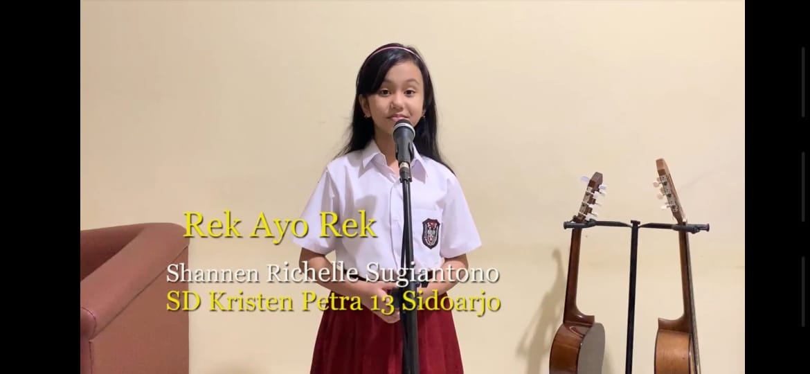 Tidak disangka bahwa lomba “Festival dan Lomba Seni Siswa Nasional (FLS2N) jenjang SD tahun 2021 akan tetap berjalan meskipun melalui daring. Siswa SD Kristen Petra 13 yang diwakili oleh Shannen Richelle Sugiantono ikut berpartisipasi dalam kegiatan lomba tingkat kecamatan tersebut. Adapun perlombaan yang kami ikuti yaitu lomba menyanyi solo vocal.