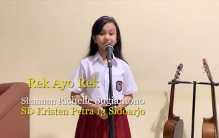 Tidak disangka bahwa lomba “Festival dan Lomba Seni Siswa Nasional (FLS2N) jenjang SD tahun 2021 akan tetap berjalan meskipun melalui daring. Siswa SD Kristen Petra 13 yang diwakili oleh Shannen Richelle Sugiantono ikut berpartisipasi dalam kegiatan lomba tingkat kecamatan tersebut. Adapun perlombaan yang kami ikuti yaitu lomba menyanyi solo vocal. Kami sangat antusias dalam mengikuti lomba tersebut. Waktu, talenta dan tenaga dicurahkan untuk mengikuti perlombaan tersebut. Puji syukur karena penyertaan Tuhan, Shannen